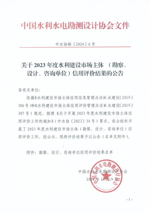 4項AAA,3項AAA+!我院在2023年度水利建設市場主體及全國水利水電勘測設計行業(yè)信用評價中再創(chuàng)佳績