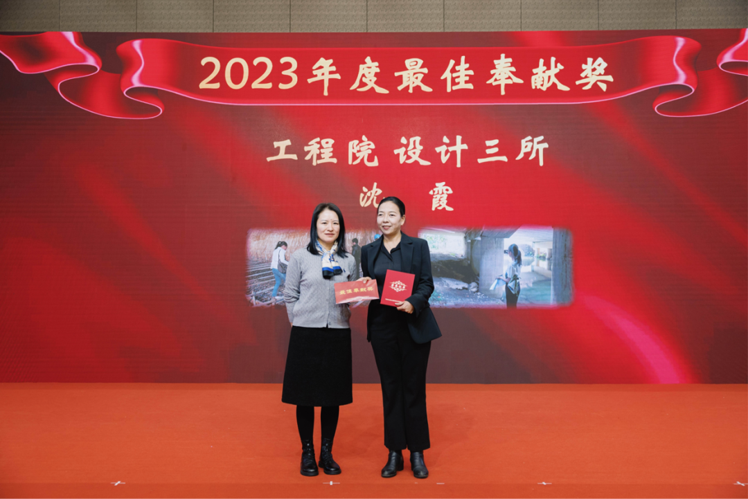 副院長湯建輝、副院長魏立峰、總規(guī)劃師張芳為2023年度最佳新人獎頒獎