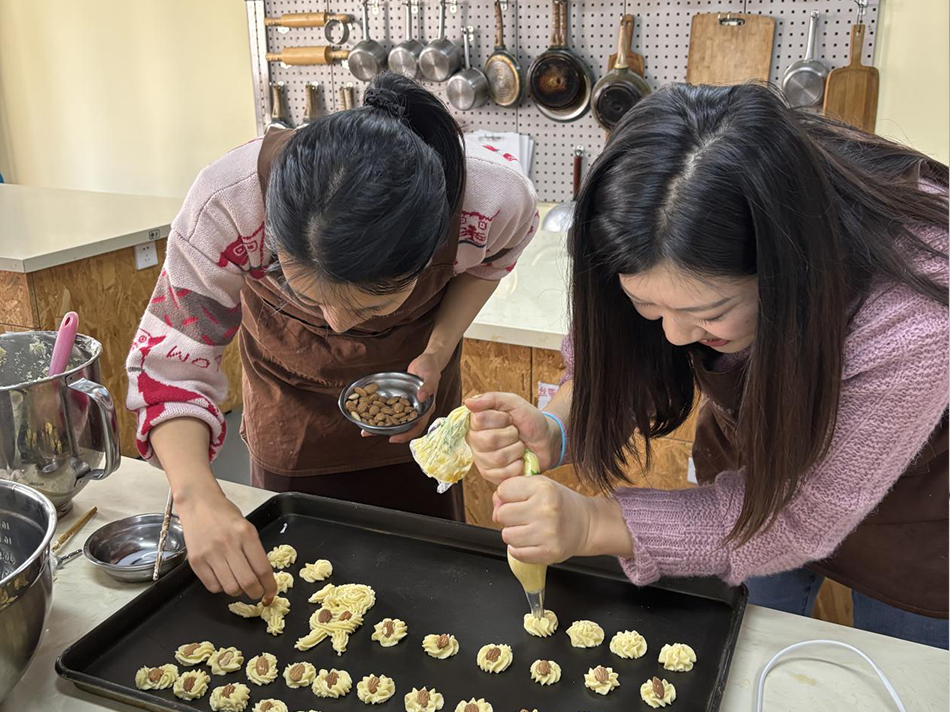 活動當(dāng)天,女職工們按時到達(dá)活動教室,發(fā)揮巧思,施展妙手,或是“掐絲、剪絲、上砂、上膠”,或是“測量、造型、印刻、拋光”,或是“和面、打發(fā)、烘烤、裝點”,解鎖了一系列全新的體驗,收獲了節(jié)日的快樂和美好。